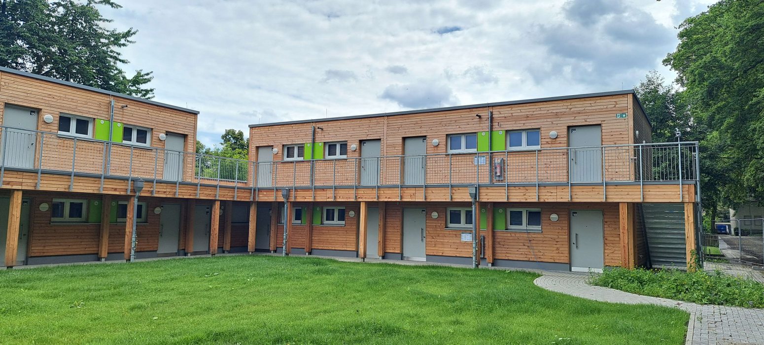Das neue Übergangswohnheim bietet mehr als nur ein Dach über dem Kopf: In harmonischer Architektur entstanden feste, barrierefreie Wohnungen mit eigenem Bad, Küche und Schlafbereich. Durch umweltfreundliche Heiztechnik und ein wohnliches Konzept wird sozialer Zusammenhalt mit nachhaltigem Bauen vereint.
